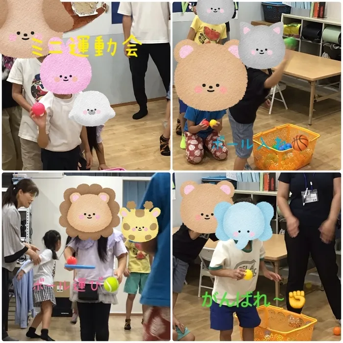 2つのチームに分かれて玉入れ競争やスプーンリレーをしました。それぞれのチームが仲間を応援したり協力しながら体を動かし楽しんでいました☺️