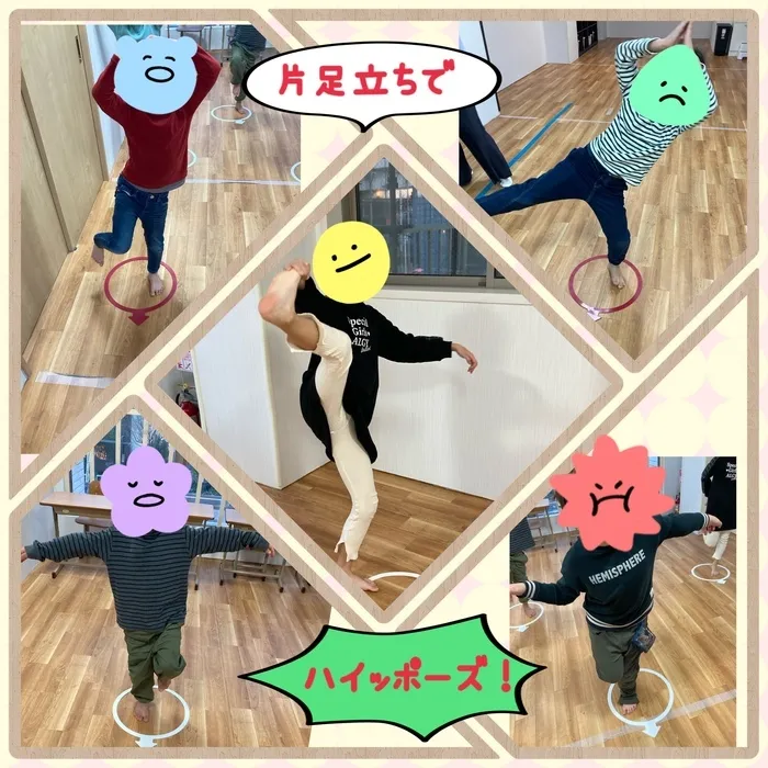 今日は運動プログラム!ということで、バランス感覚を鍛えるために片足立ちに挑戦しました!