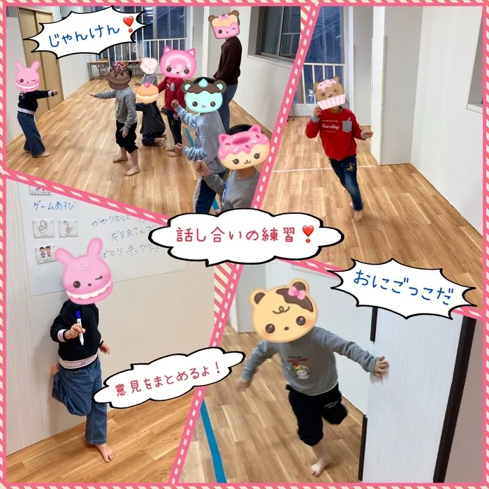 今日のプログラムは、“みんな”で“何をするか”を“自分たちで話し合って決める!”という、話し合いの練習をしました。