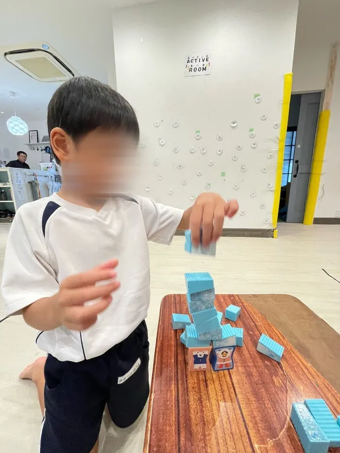 どんどん高くなっていくとさらに安定せずにグラグラすると(先生手伝って!!)とスタッフに教えてくれてスタッフも補助に入り
