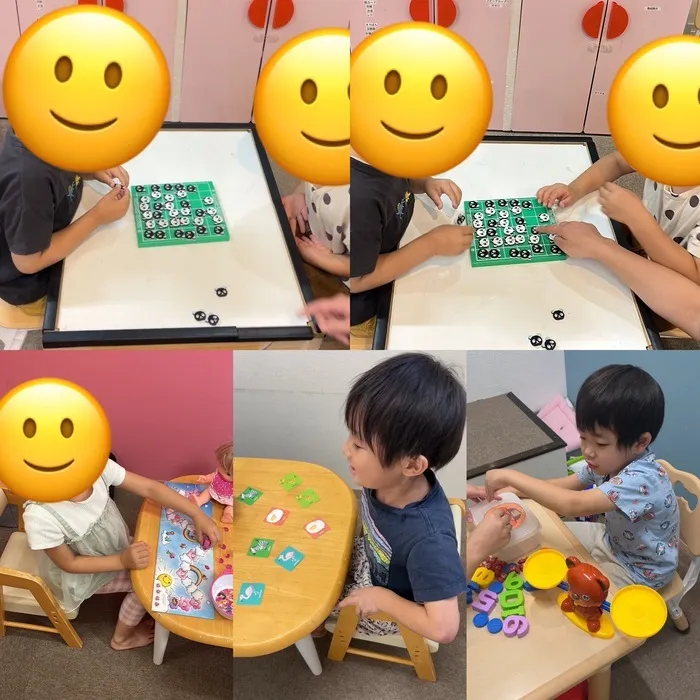 同級生によるオセロ対決。勝負なので、勝ち負けを伴う課題となりますが、事前の個別療育にて、勝った時の対応、負けた時の対応を教えた上でのオセロ。