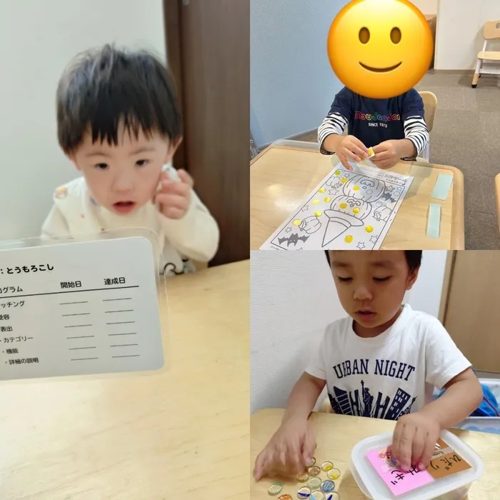 そろそろハロウィンですね✨季節に合わせたハロウィン関連のシール貼りをしているBくん。はじめの会との相乗効果で、指先の力をしっかりアップ💪のCくん。
