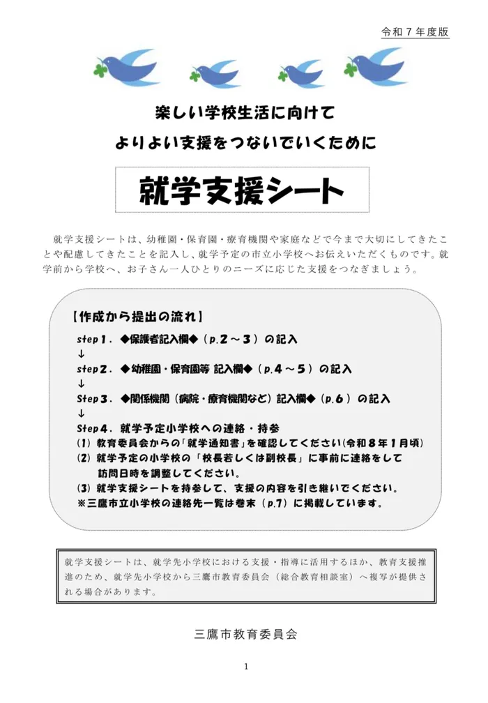 小学校への引き継ぎ、先生たちに伝えておきたいお子さまの様子を記す、"就学支援シート"。