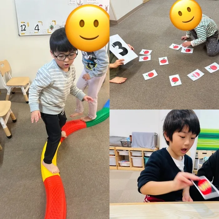 表示された数字の枚数だけカードを取る。かずの教室の集団活動として、主に年少さんに向けた課題設定。Bくんは確実に数に関するスキルが身についている様子✨