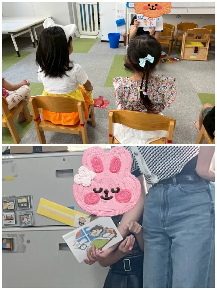 「おはよう」や「さようなら」、「いただきます」などが出てきてみんなで大きな声で歌います😊