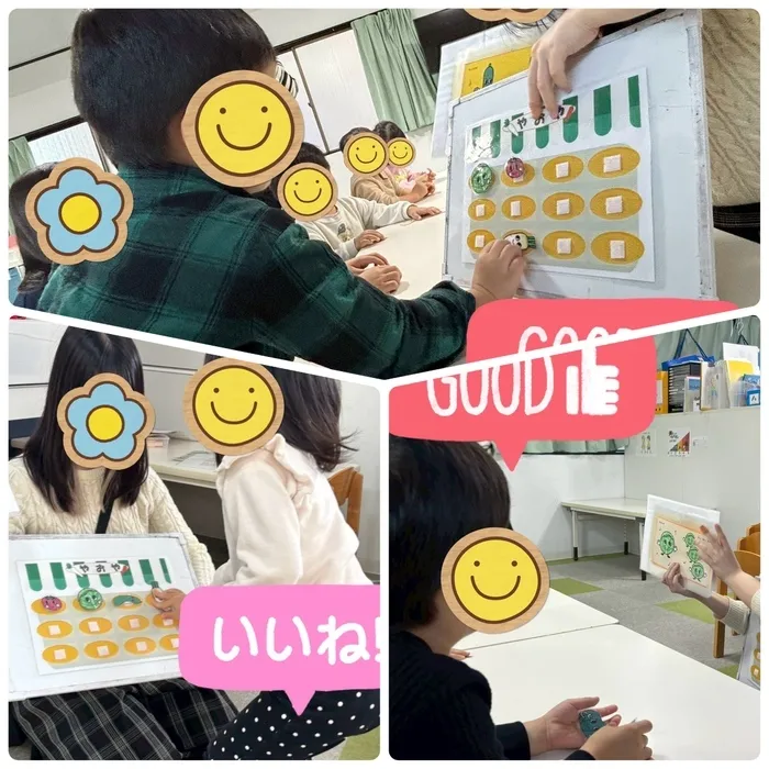 支援員が「これなぁに?」と野菜カードを見せると、元気いっぱいにお名前を発表してくれたり、お歌を知っている子は口ずさみながら貼りに来てくれました🙆♀️