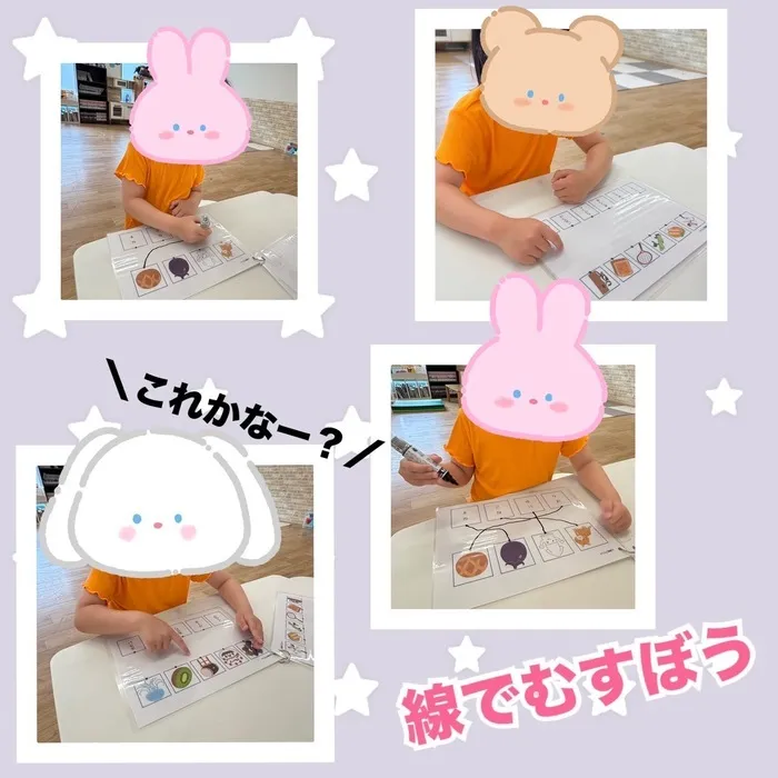 来所してすぐ「線結びってどんなことするのー?」と興味津々で聞いてきてくれてゲームの準備をしました!