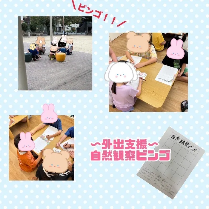 今日は外出支援で「自然観察ビンゴ」をしました!