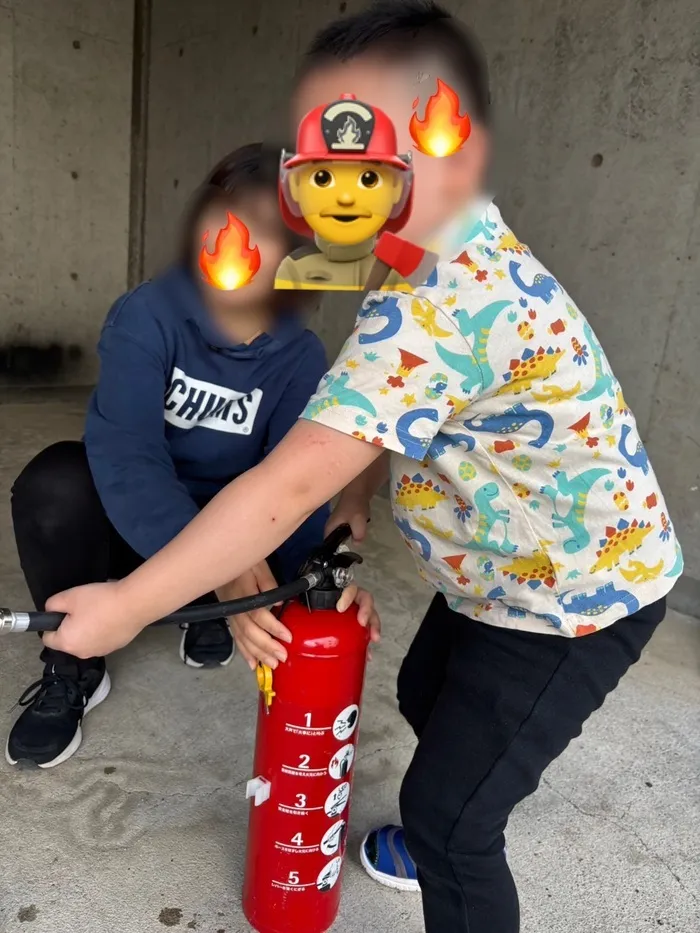 いつもは「触ってはいけない」と言われ、見ているだけの消火器を、実際に手に持てるということもあって、