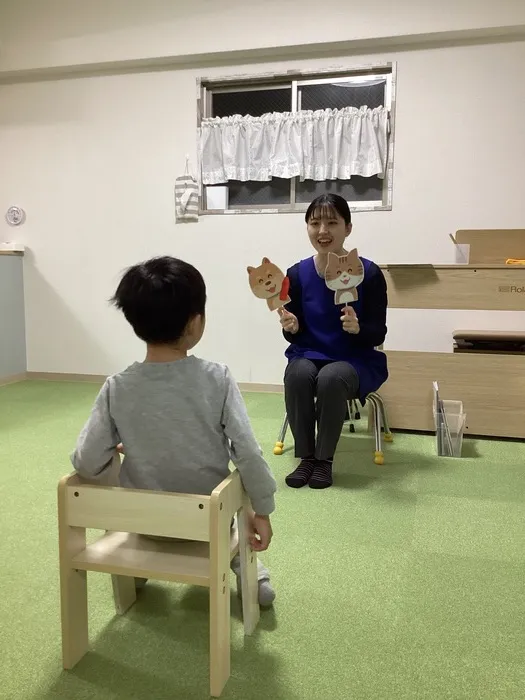 SST(ソーシャルスキルトレーニング)をペープサートを使って「こんなときどうする?」と問いかけながら、お子さまたちにお話しています😊