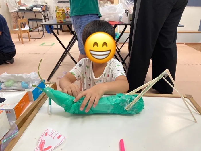 「ステッキ」や「バッタ」など、それぞれが思い思いの作品を作っていました🖍️