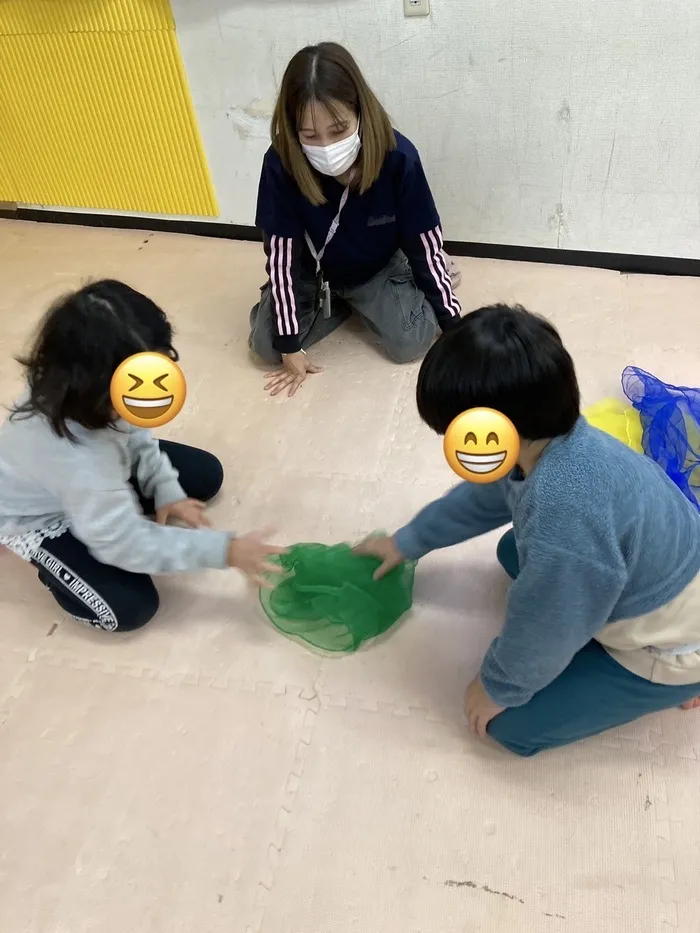 即時反応では、2人組になり、スタッフが指示した色のスカーフを相手に負けないよう素早く取ってもらいました⭐️