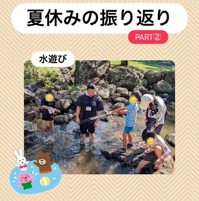 特にお子様達の中で流行していたのは、虫捕りや生物探しです◎集中して頑張って生物が取れると達成感を感じることもでき、自然に触れる楽しさを知りながら過ごす夏となりました。