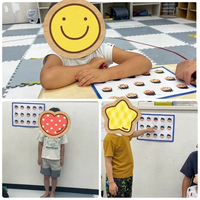 今日の集団活動では、お友達の顔は今どんな気持ちかな??と表情で相手の気持ちを考える活動をしました😌