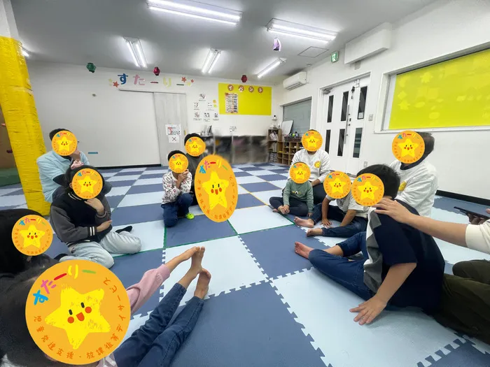 みんなで輪になってもらい、職員の合図で小学生のお友達は1分30秒、未就学のお友達には1分からの制限時間を設けていざ、スタート!🥹