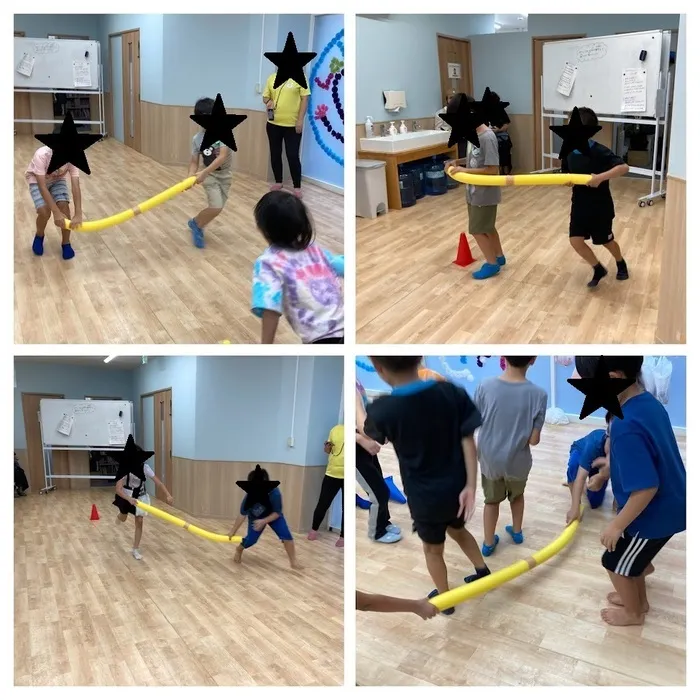 「棒を上に通す時はみんなしゃがんだら通しやすくなるのではないか?」