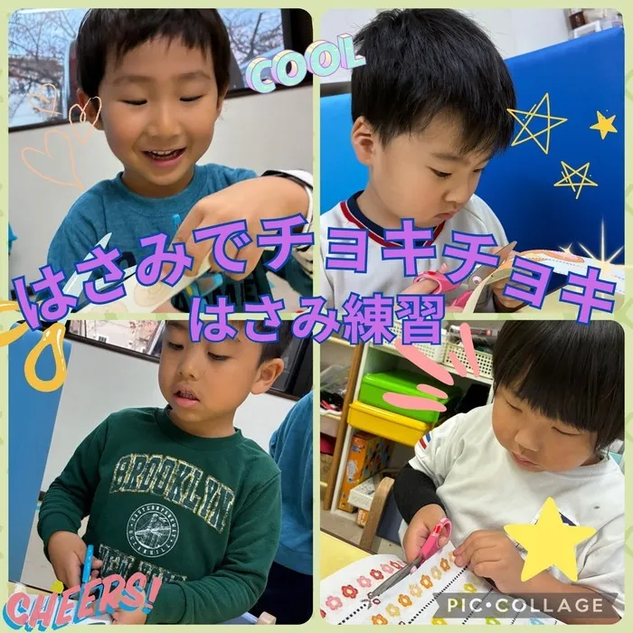 はさみ練習では、お子様の段階に合わせて準備をしています!