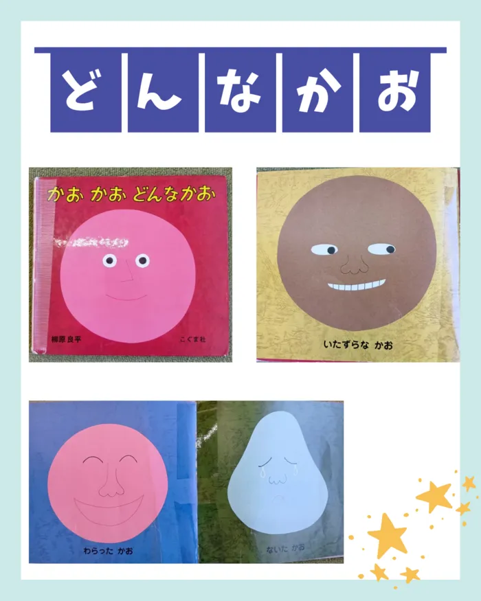 怒った顔や笑った顔、他にも色々な表情のページがあり、スタッフと一緒に絵本の顔を見て真似をする事を楽しんでいます😆