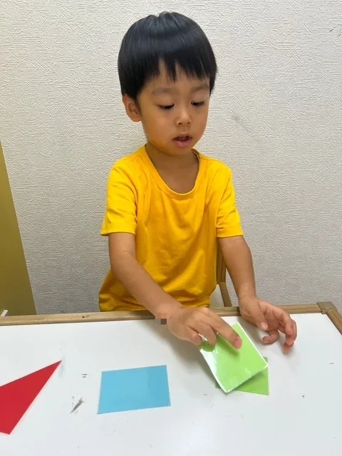 写真のお友達は、しかく、さんかく、ながしかくに挑戦🔥
