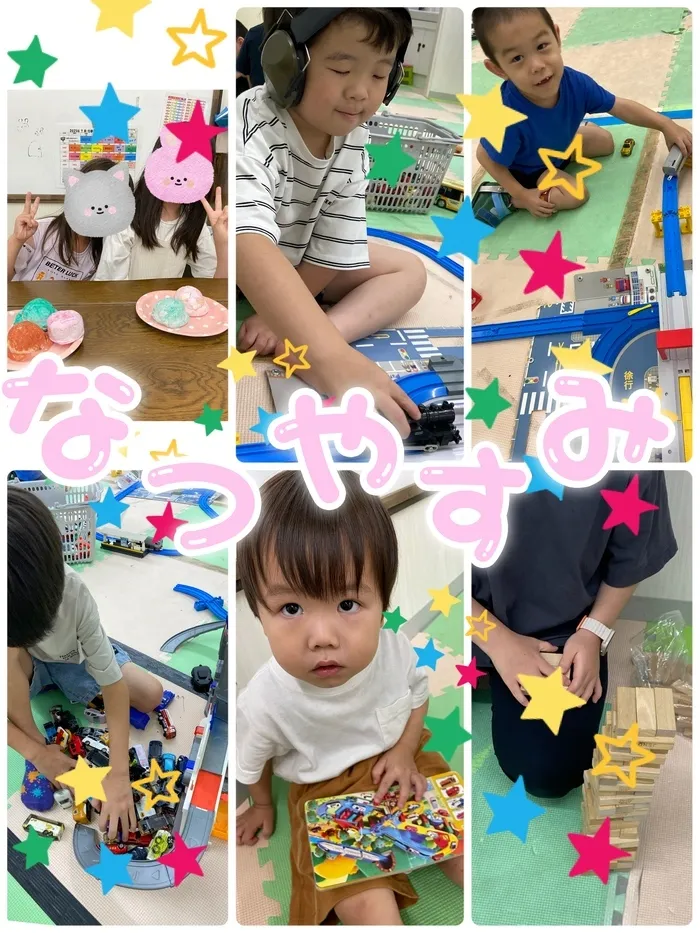 プラレールを長ーく組み立てて電車を走らせたり、紙粘土でサーティー☝️みたいなアイス🍨を作ったり…元気いっぱい楽しみましたよ〜🤗☀️