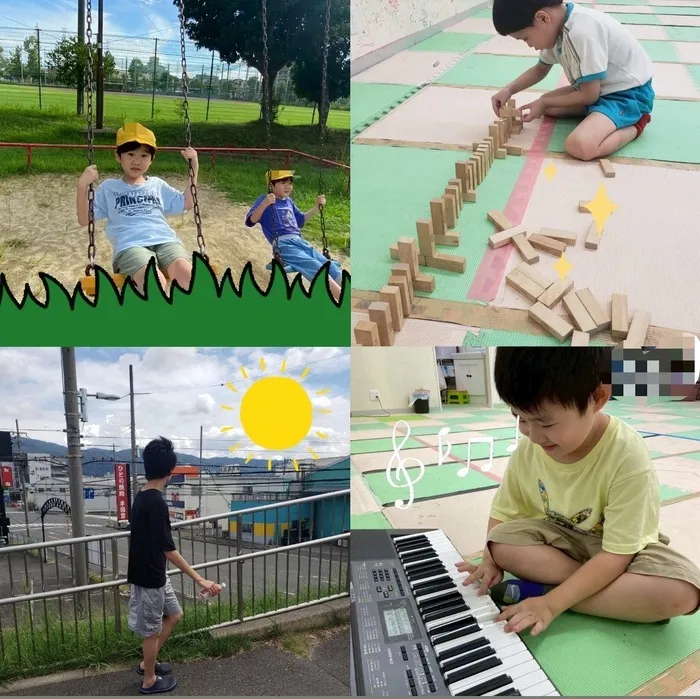 室内遊びではピアノをしたり🎹ジェンガを使ってドミノをしたりと真剣な眼差しで楽しそうです✨