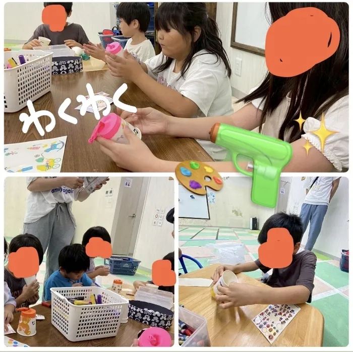 スタッフが事前に紙コップに風船を取り付けた鉄砲に各々が可愛いシールを貼ったりペンで可愛くデコったり✨