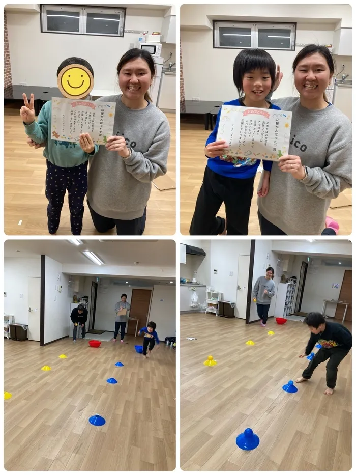 ボールを持つ×走る×ボールを置く など2つ以上の動きを同時に行う必要があり、協調運動の練習にもなります😊また、早くゴールする為には速く走ることはもちろん、ボール🥎を落とさないように正確に置くこともポイント!力加減に気をつける必要があります☝️