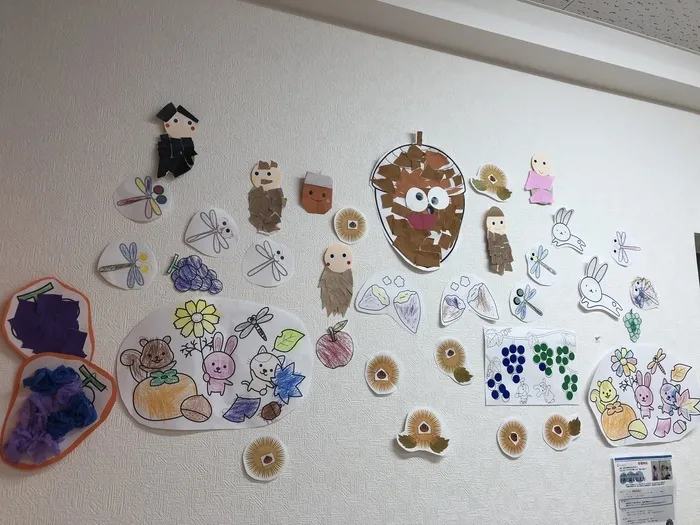 みんなが協力して作成してくれたどんぐりや動物たちのぬりえ、