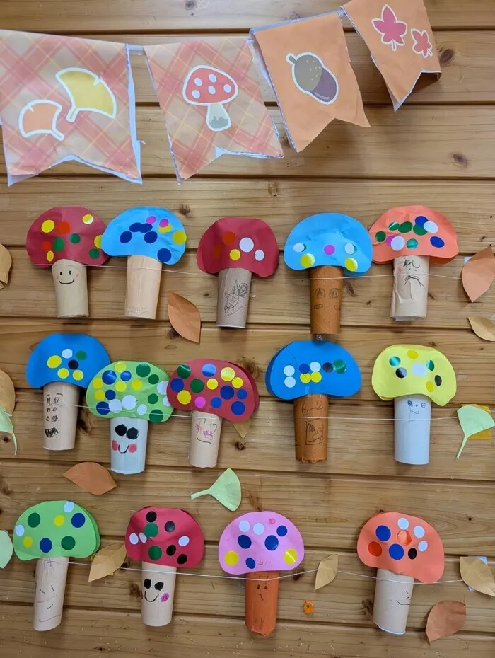 好きな色のかさを貼って飾りつけて完成です🤩🎶