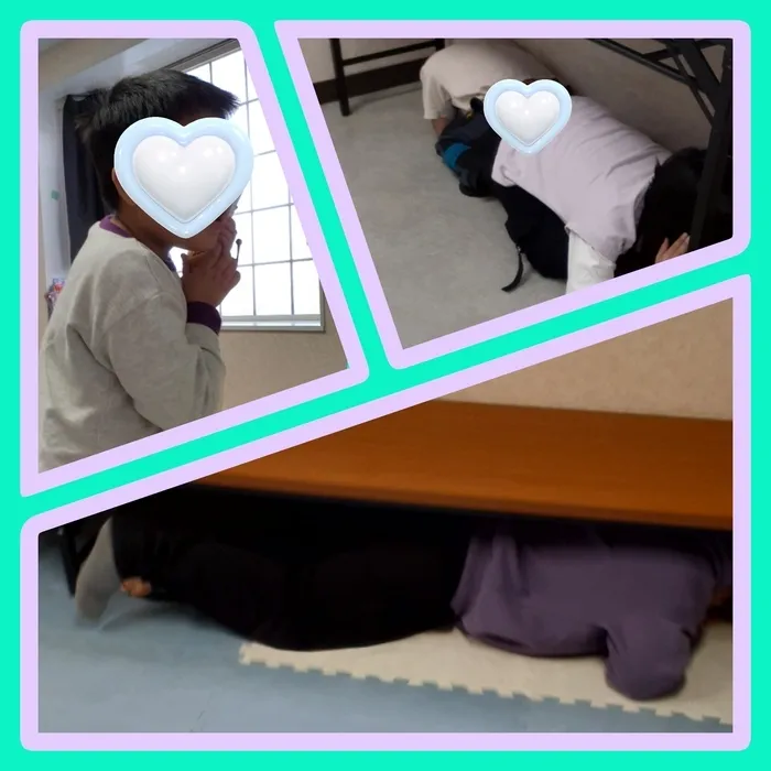 緊急地震速報を鳴らしてみると、 みんな素早く静かに、机の下に隠れることができました👍