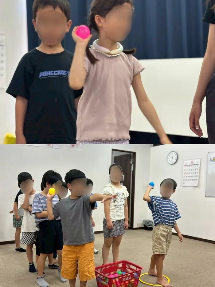 何度も挑戦していく中で狙い通りに当たる子も何人もおり、周りの子も「すごいね!」と褒めており、当たらなかった子にも「今の惜しいね!」など素敵な声が聞こえました。