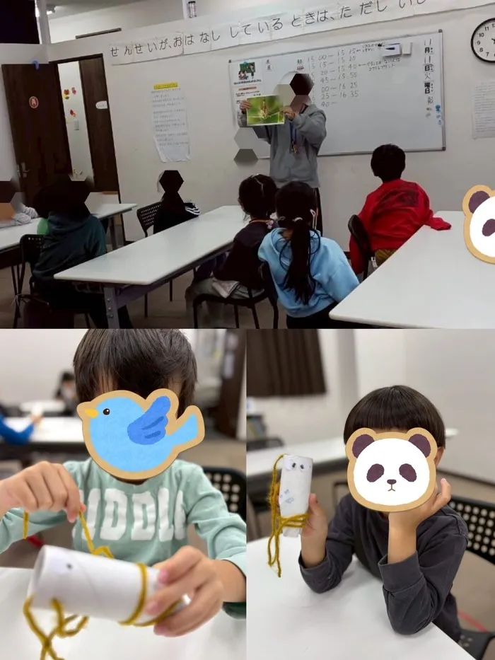 ②の作業では、毛糸をテープでとめる作業に苦戦している子もいましたが、職員のサポートもあり、全員上手に巻くことができました!