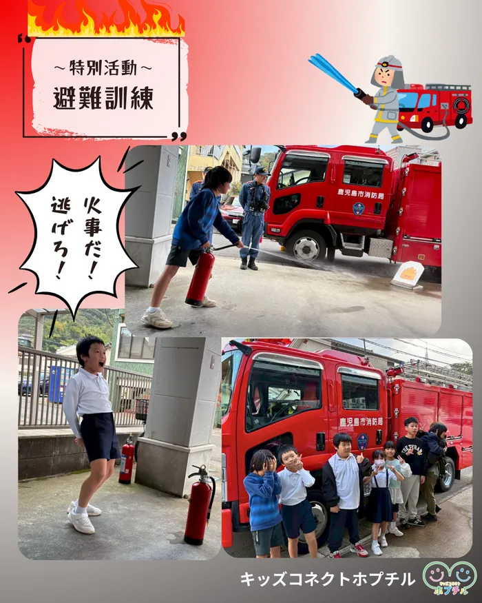 11月25日に放デイの子どもたちと、地震からの火災による避難訓練を行いました!