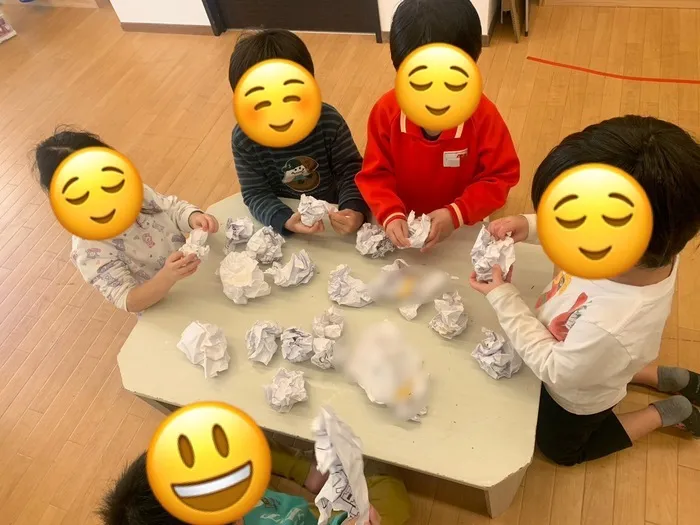 くしゃくしゃに丸めた紙をたくさん用意し、お宝を3つだけ中に隠します🙌