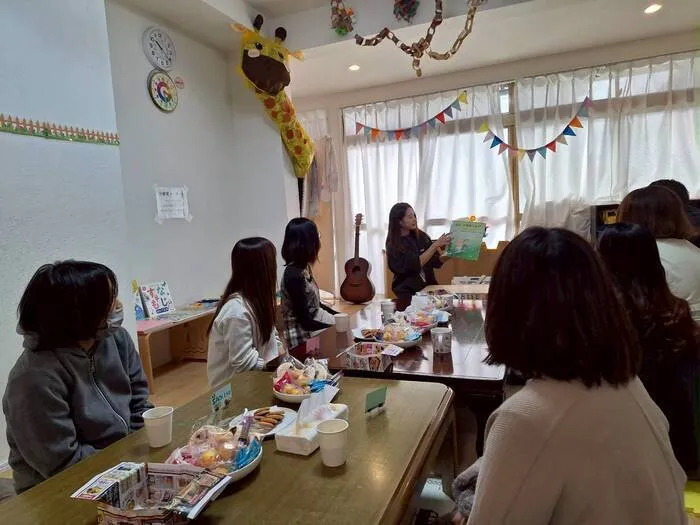 普段お子さんが大好きな読み聞かせや紙芝居、職員のギター演奏を楽しんでいただいた後、皆さんの笑顔あふれる茶話会が続き、あっという間に時間が過ぎていきました。
