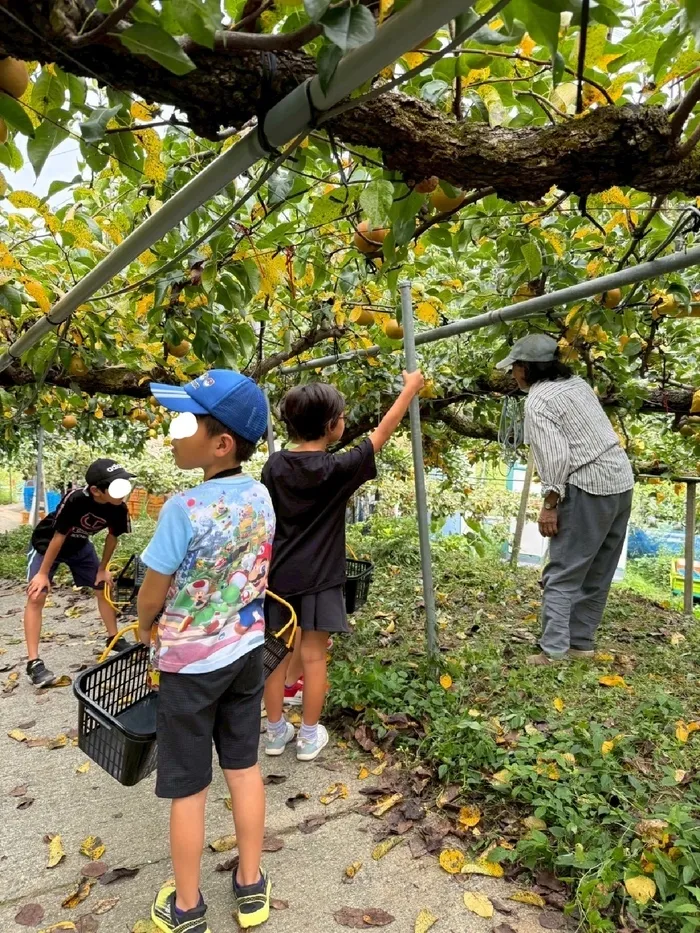 梨狩りの前に試食も沢山させて頂き、子どもたちも大満足✨✨