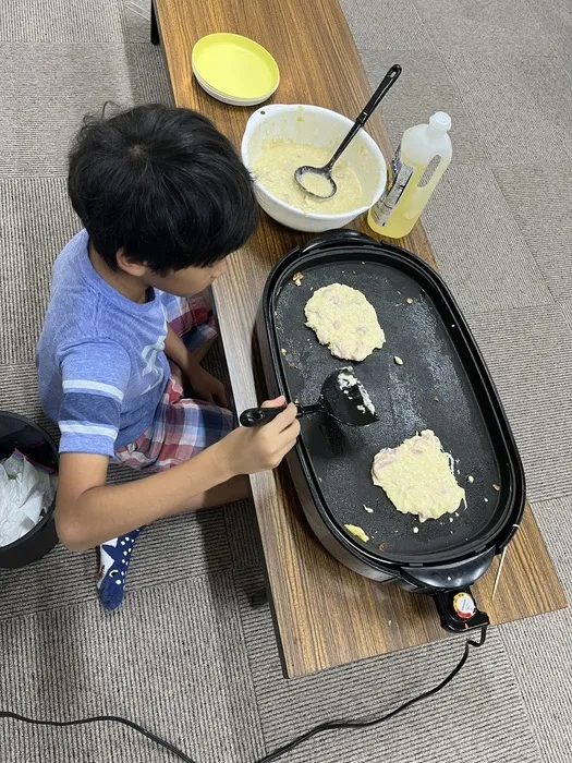 今日は、子どもたちとお好み焼きを作り、午後からはなまずの里公園に行ったので、その紹介をしていきます!!