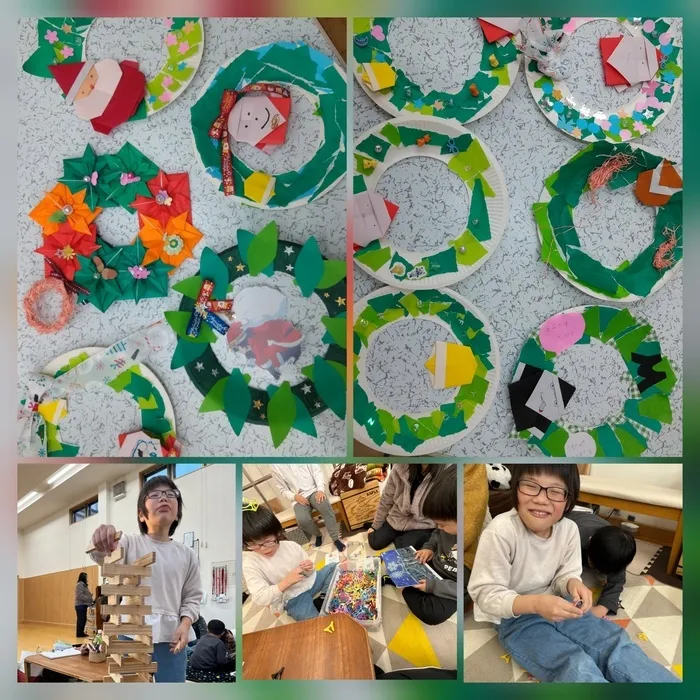ほとんどの利用児童さんが、クリスマス製作のリースを完成させつつあります。