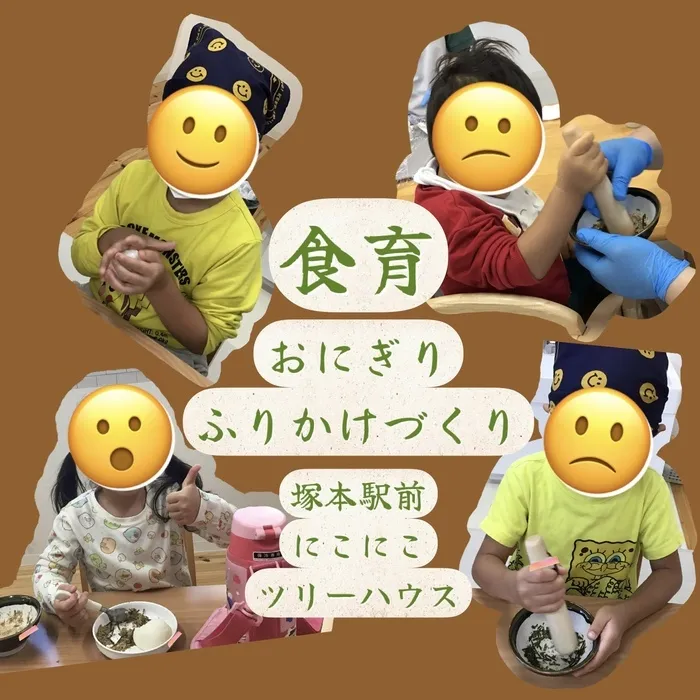 今月の食育は写真にうつっている材料を使って、みんなが大好き&真剣な眼差しで取り組む『おにぎり・ふりかけづくり』を行いました🍙✨