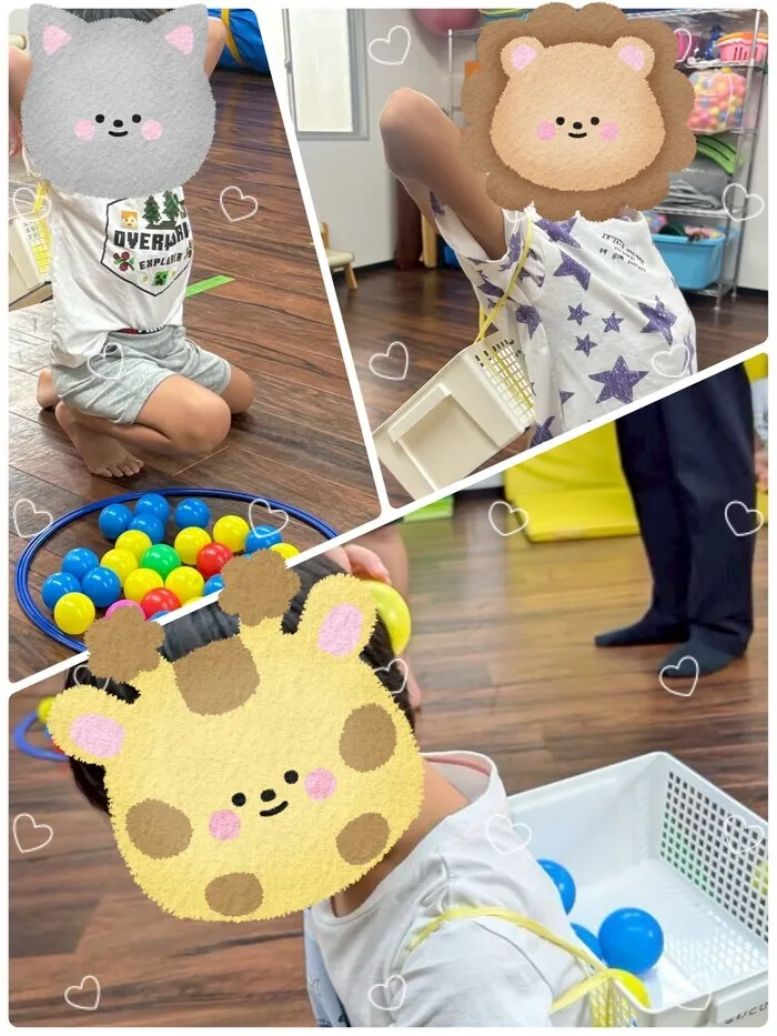 制限時間内にボールを背中のカゴに何個入れることができるか挑戦してもらいました✨️