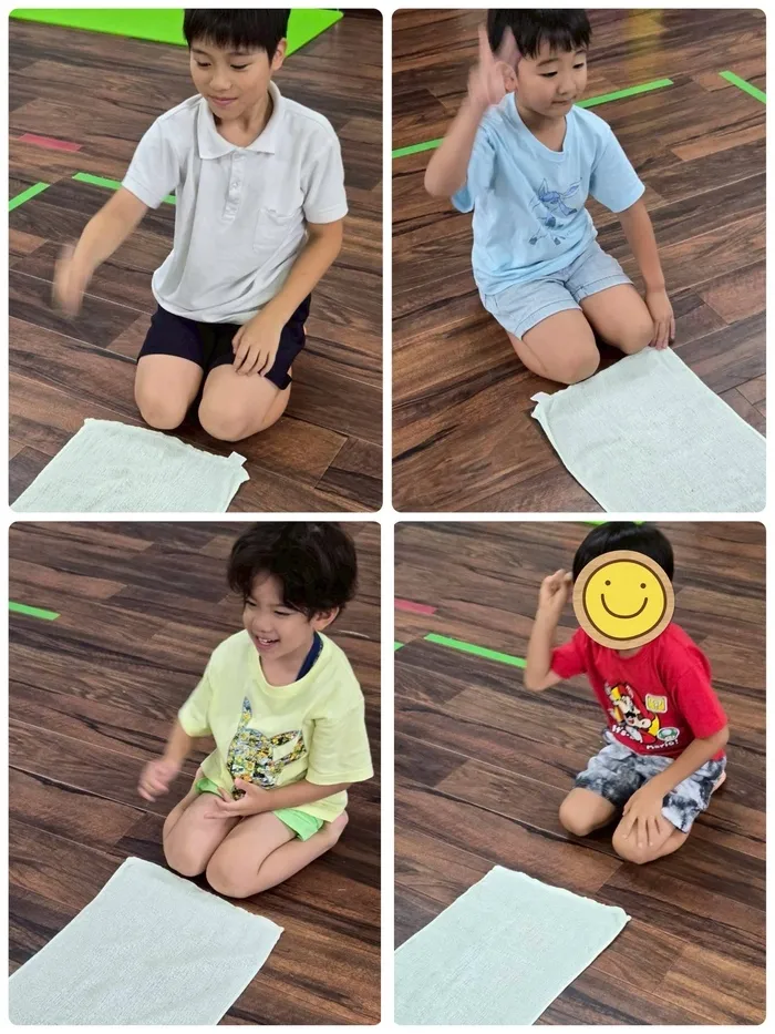 お友だちより素早くタオルを取ることができると「やった~!🥰」と両手を上げながら喜ぶ姿がありました🥰
