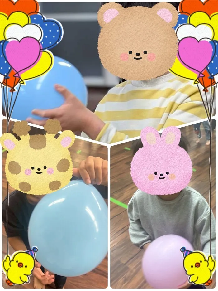 割れるかも😣と不安そうな顔や元気に風船を追いかける姿、お話しながら楽しそうに笑いあって風船を投げる姿など子どもたちのかわいいところがたくさん出ていました😍