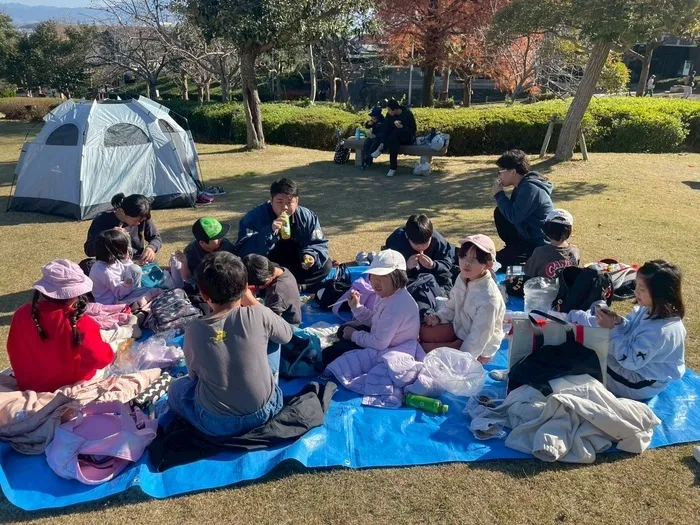 身体を動かしたあとは、みんなで集まってお弁当タイム。風の心地よさや鳥の声を感じながら味わうお弁当は格別で、「外で食べるともっとおいしいね!」という声も聞こえてきました。