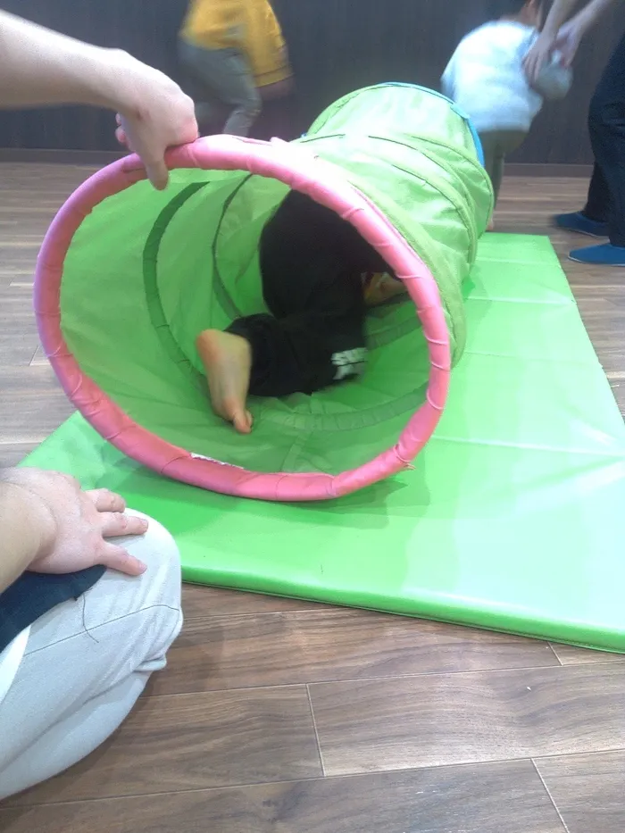写真のお友達は体を小さく丸めて上手にトンネルをくぐっていました!