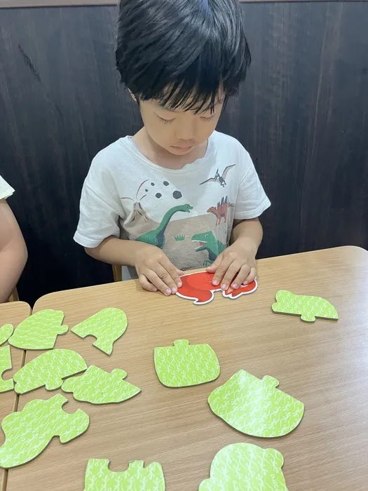 パズルを選ぶ時には、裏返しのパズルを見ながらどの動物か想像したり、友達がひいたカードを覚えたり、たくさん目を動かしてどれにするか選んだりなど