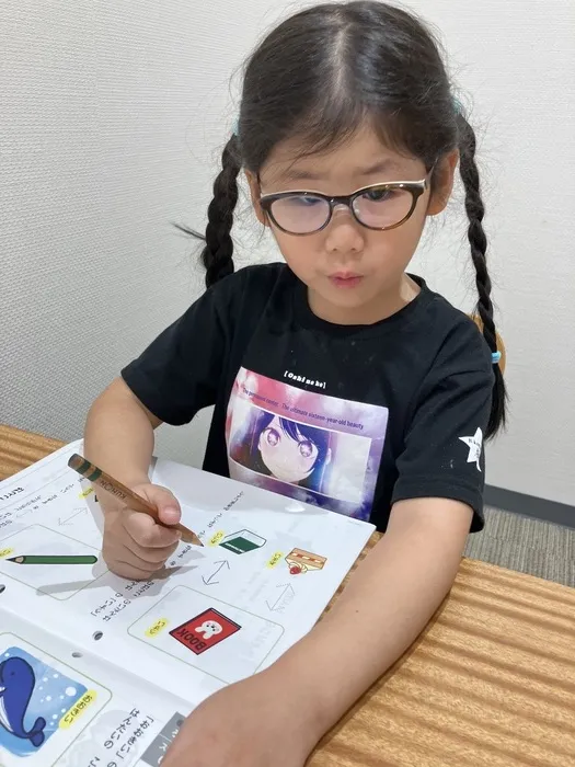 写真のお子様は反対言葉の課題で、理由も考えながら行うことができました👏