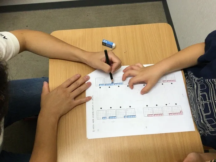 お子さん達は、図の中に描かれたブロックの数を数えて