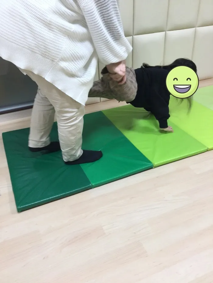 サーキットのマット運動では【ておしぐるま】に取り組みました。