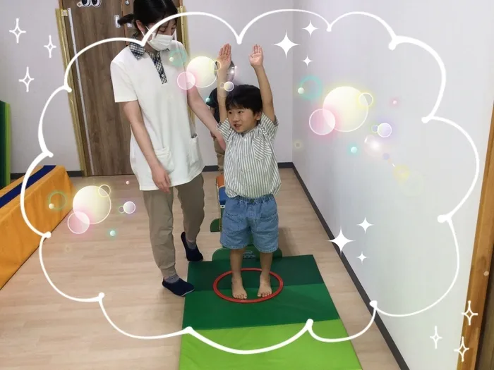 「腕をピーンと伸ばしてね💕」と伝えますが