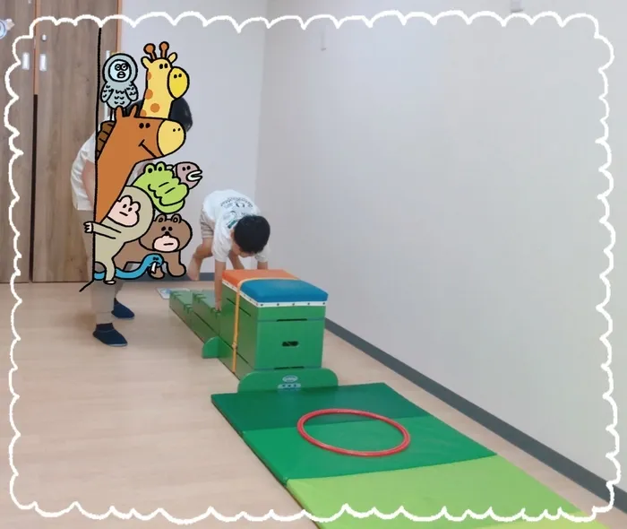 運動プログラム・跳び箱「階段カエル跳び」です👀